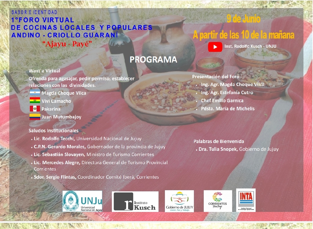 A partir de hoy, Tilcara es centro del 1º Foro de modalidad Virtual de Cocinas Locales y Populares Andino – Criollo Guaraní «Ajayu – Payé», espacio en el que se compartirán experiencias, saberes y haceres de la cocina regional. El encuentro se extenderá hasta el 12 de junio y se podrá seguir a través del canal YouTube Inst. Rodolfo Kusch – UNJU.